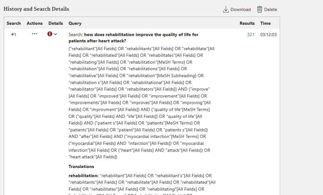 Kai kurie straipsnių pavadinimai rezultatų sąraše gali būti pateikiami laužtiniuose skliaustuose – tai reiškia, kad PubMed esanti šių straipsnių informacija versta iš kitos kalbos, o straipsnio pilno teksto dokumentas parašytas ne anglų kalba.