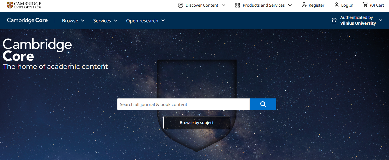 Elektroninių knygų (Cambridge Core eBooks) ir žurnalų (Cambridge Core Journals) duomenų bazė.